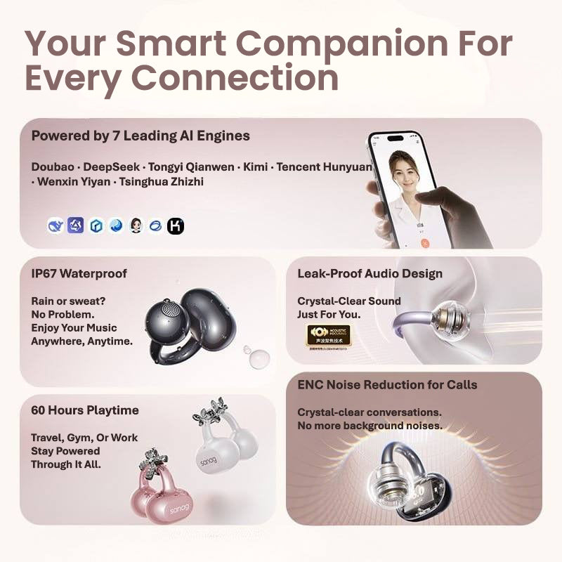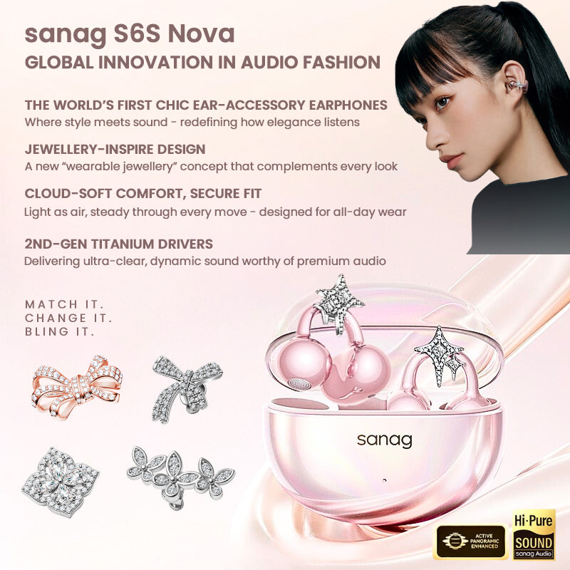 Crafted as a wearable audio accessory, Nova blends open-ear comfort with eye-catching bling details — so your sound looks as good as it feels.
